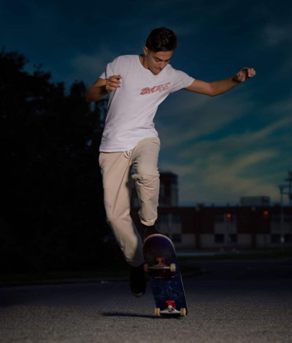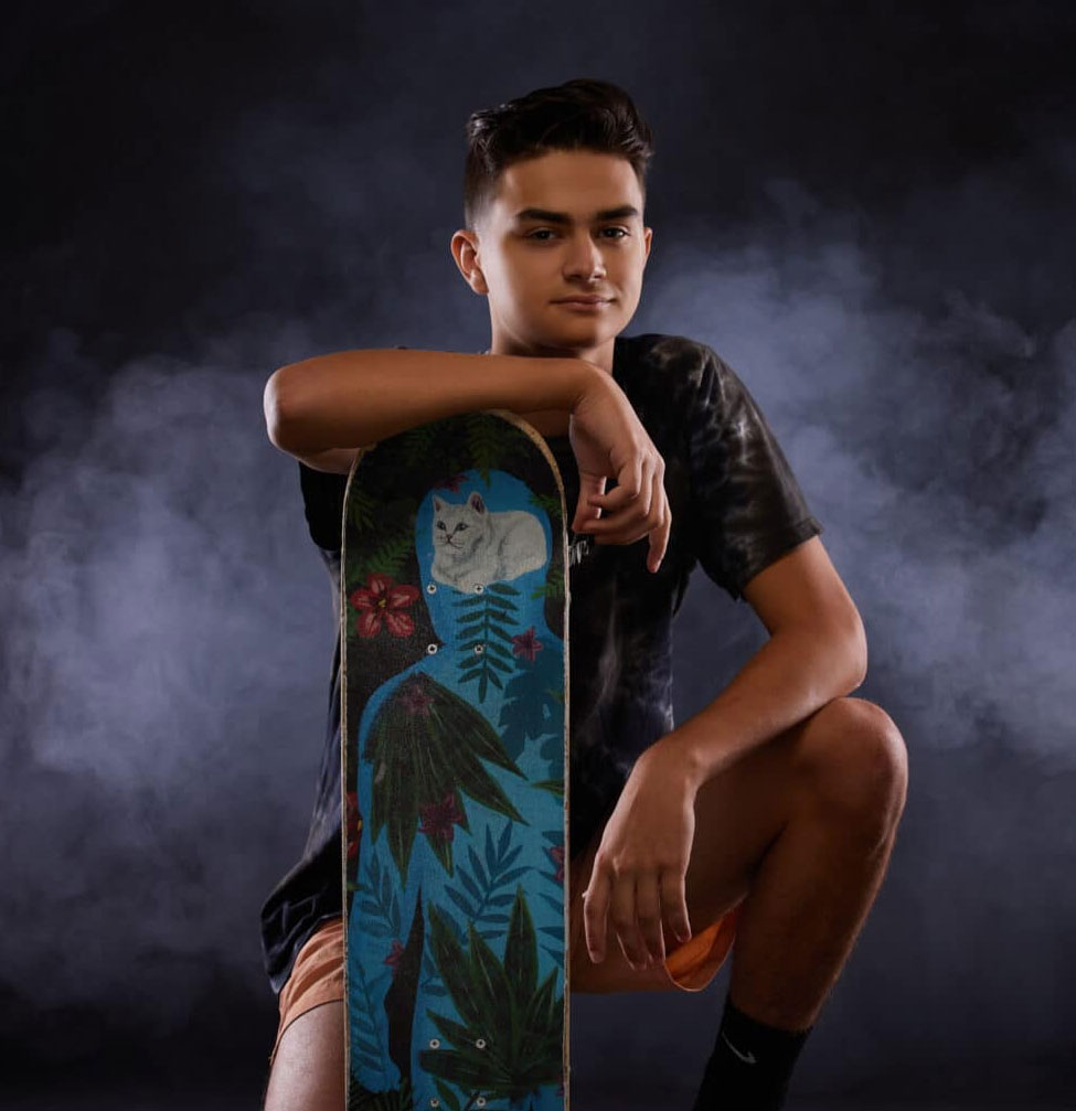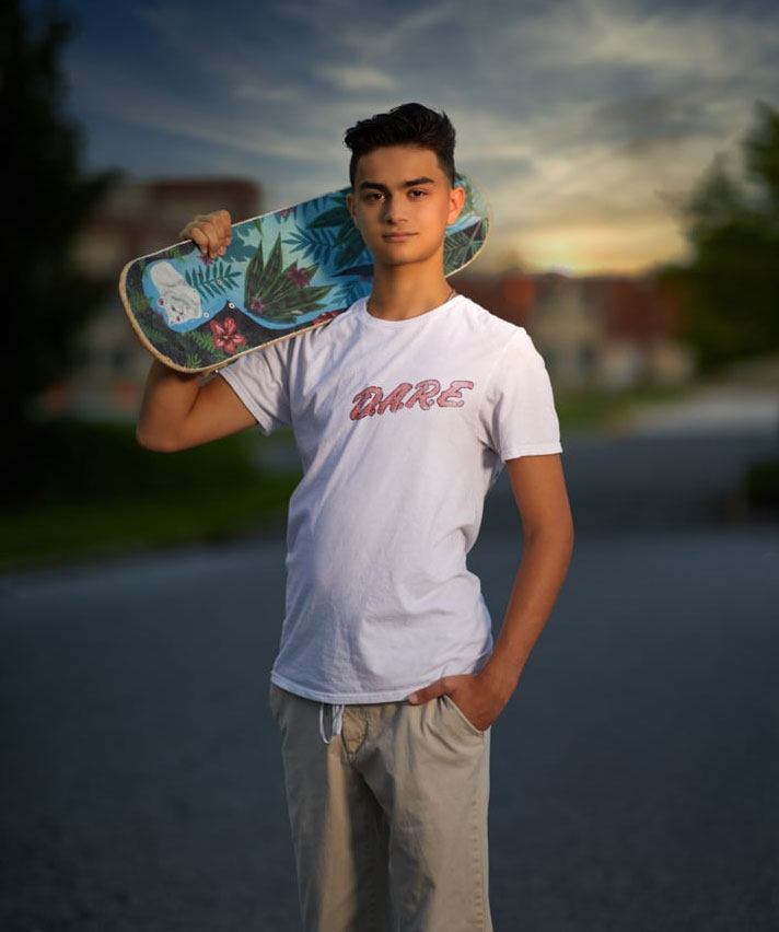 Well, This Was A First For Us! A High School Senior That LOVES To Skateboard! Evan Comes From Washington Township High School in Sewell, New Jersey. Evan Spends His Days Off At The Only Place That Clears His Mind, The Skate Park. If He Isn’t Hanging Out With Friends At The Skate Park, Evan Is Down The Shore At His Grandparents Shore House. He Is Always Been Active And Likes To Do Anything That Includes Being Outdoors (Fishing And Camping Are His Go- To’s). He Is Always Surrounded By Friends And Is The Life Of The Party! Evan Came To Our Studio Because He Saw Our Work On Social Media And Thought It Would Be Interesting In Combining Skateboarding With Amazing Graphics!