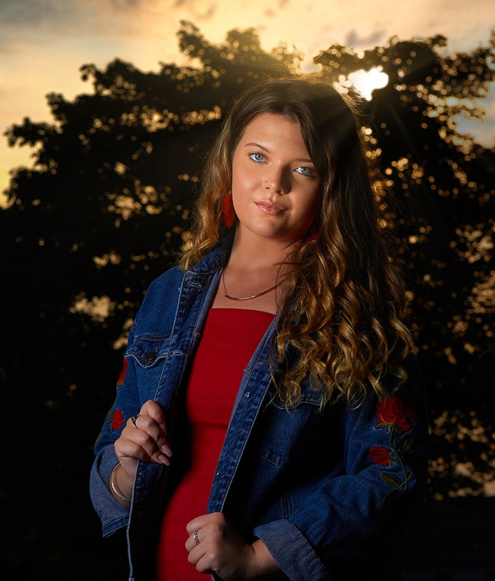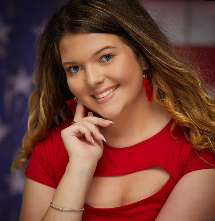 Gia Came In Our Studio Ready To Go With Multiple Looks Plus A Large Bag Full Of Golf Clubs. Well, We Were Beyond Excited Because Gia Was Our First High School Senior That Played Golf!! We Had So Many Ideas Floating In Our Head For Her Senior Portrait Shoot. But, First Things First, Was Doing The Cap & Gown Photos! Ah, The Classic Traditional Photos For The Yearbook. After That Was Done, The True Fun Began! Showcasing Her “American Girl” Look & Style Was Shown Throughout The Shoot, So Having An American Flag Backdrop Made Perfect Sense! We Matched That With Her “Classic” Look Which Was A Black Dress With Beautiful Matching Crystal Earrings & A Necklace.