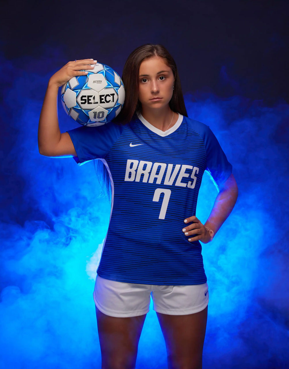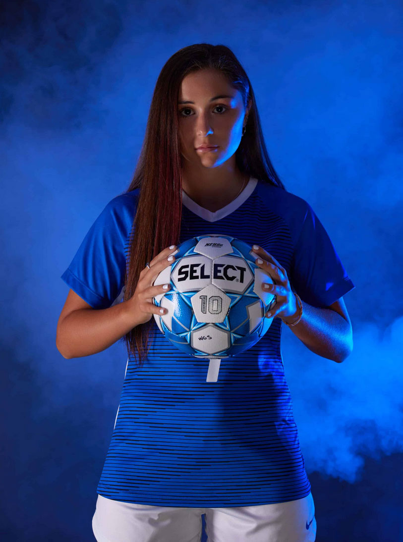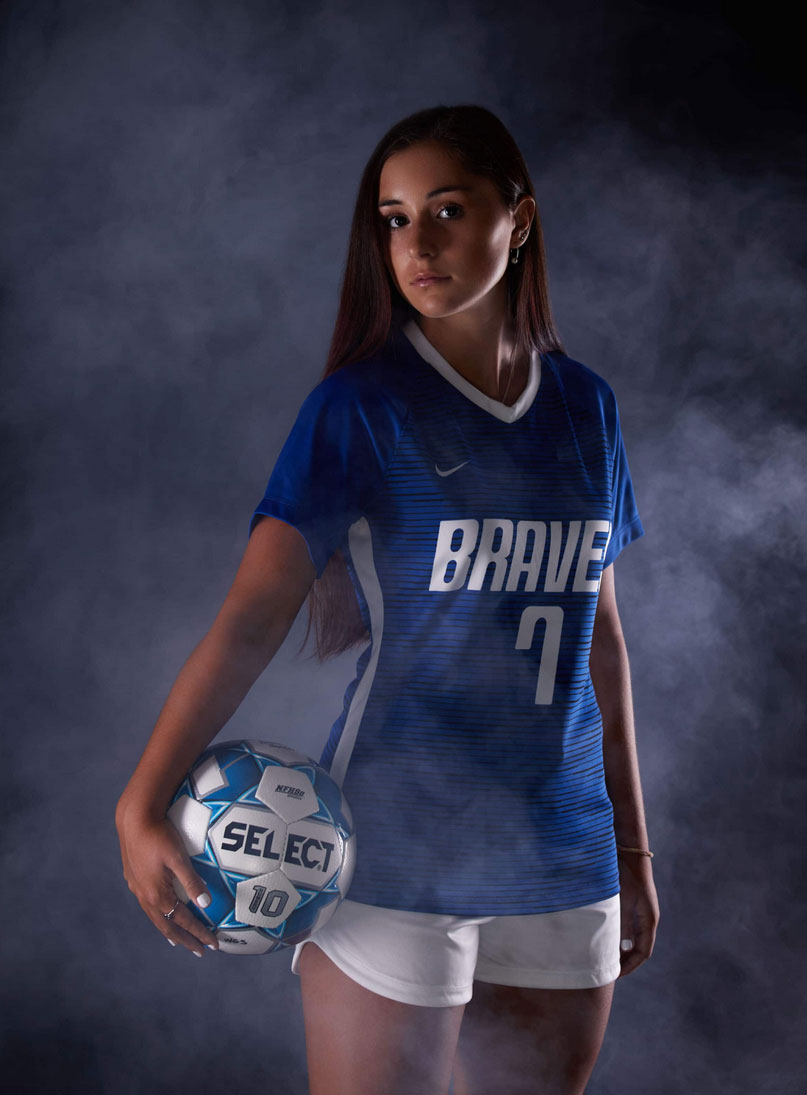 With Her Fashion Shots Done And Out Of The Way, We Then Began To Prepare For Her Soccer Look! Blue Lights And Smoke Really Brought Marisa’s Sports Vision To Life! Most Student-Athletes, We Have Had In The Past Were Involved In Multiple Sports; But Not Marisa! Soccer Has Always Been Her Focus; So, We Knew We Had To Make These Photos Special Just For Her!