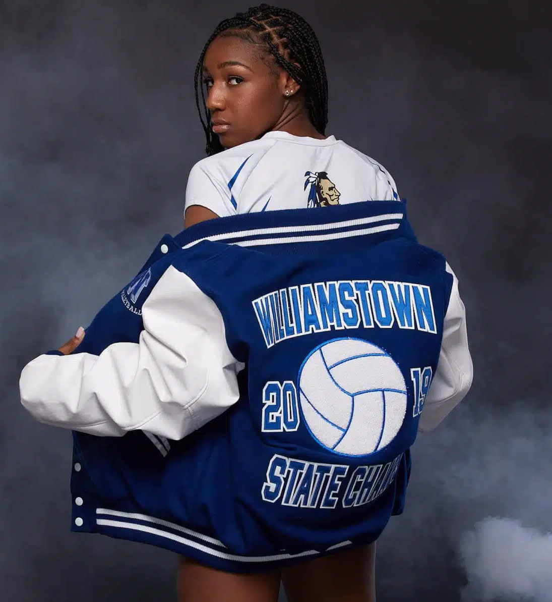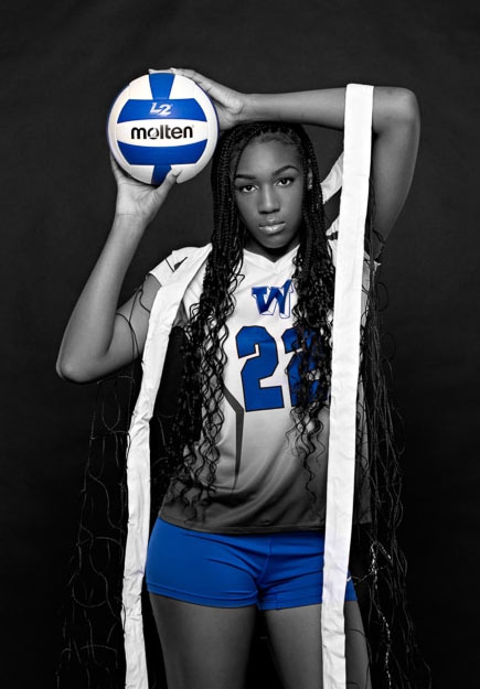 Then, We Switched Out The Black Background For A Pink Background, That Raina Added An “American Girl” Look To It; Which Consisted Of A Cute White Top And Blue Jeans. Raina’s Beautiful Smile Truly Was Showing. We Then Took Some Beautiful Shots Outside With The Sunset Slowly Going Down. Finally, We Took Raina Back Inside And Got Her Into The Most Comfortable Outfit Yet, Her Williamstown “Braves” Volleyball Uniform. We Did What We Do Best At Get Shot By Brian, We Take Sports Photos To The Extreme! Adding A Volleyball Net Around Raina And Smoke, Looked Bad Ass! Finally, Putting On Her 2019 Volleyball State Champion Jacket, We Helped Raina Complete Her Entire Look!